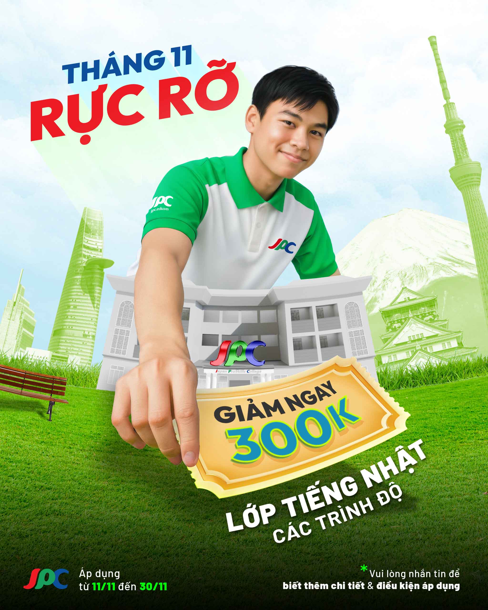 Tháng 11 đến rồi – tháng của yêu thương và tri ân Thầy Cô! Và cách tuyệt vời nhất để nói “cảm ơn” Thầy Cô chính là học tập, trưởng thành và phát triển mỗi ngày. Nhân dịp đặc biệt này, JPC - Kaizen mang đến ưu đãi đặc biệt giảm ngay 300k học phí khi đăng ký khóa tiếng Nhật các trình độ trên toàn quốc từ 11/11 - 30/11/2025!